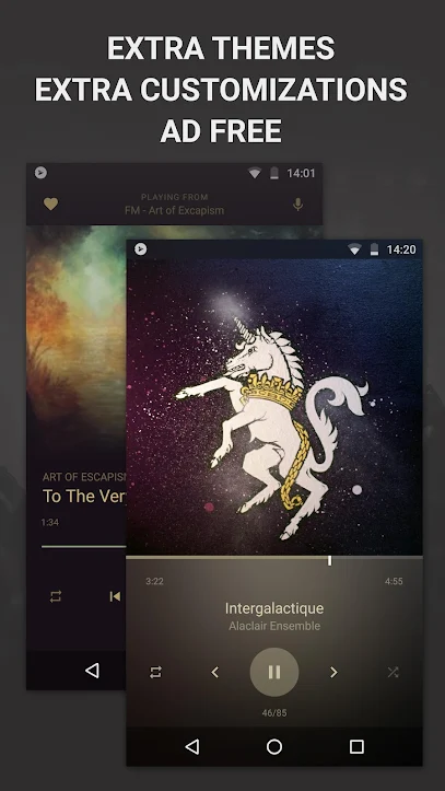 BlackPlayer Exclusive - Premium MP3 Music PlayerBlackPlayer EX removes the Ads to focus on what matters the most, music. Includes tons of extra premium features. Of course all of the excellent features of BlackPlayer Free is also included in this music player. Make your own interface with the customization found in the Settings menu.